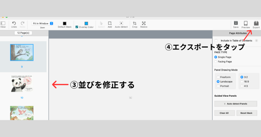 3. 並び順を修正する 画像の順番が前後していないか確認します。もしおかしければ、ここでドラッグ&ドロップして正しい順番に直しましょう。