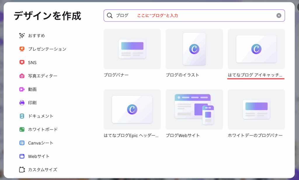 そう!“ブログ用アイキャッチ”と打つだけでOKです。