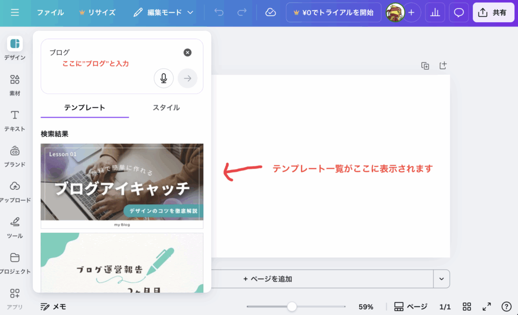 Canvaは日本語ブログ向けのデザインも豊富です!