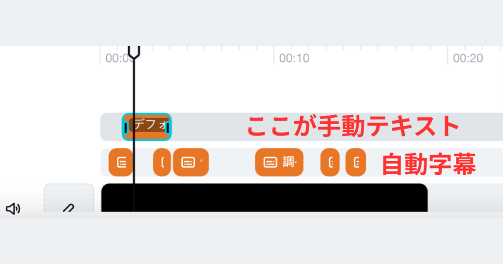 - 自動字幕とは別のトラック(段)に配置されるので、字幕と被らない位置に調整しましょう。