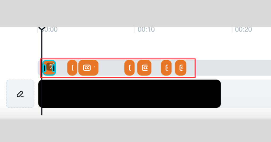- タイムライン上の字幕をどれか1つだけクリックして選択します。