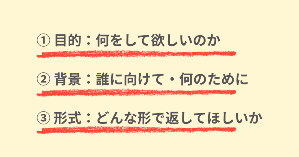 ①目的:何をしてほしいのか
