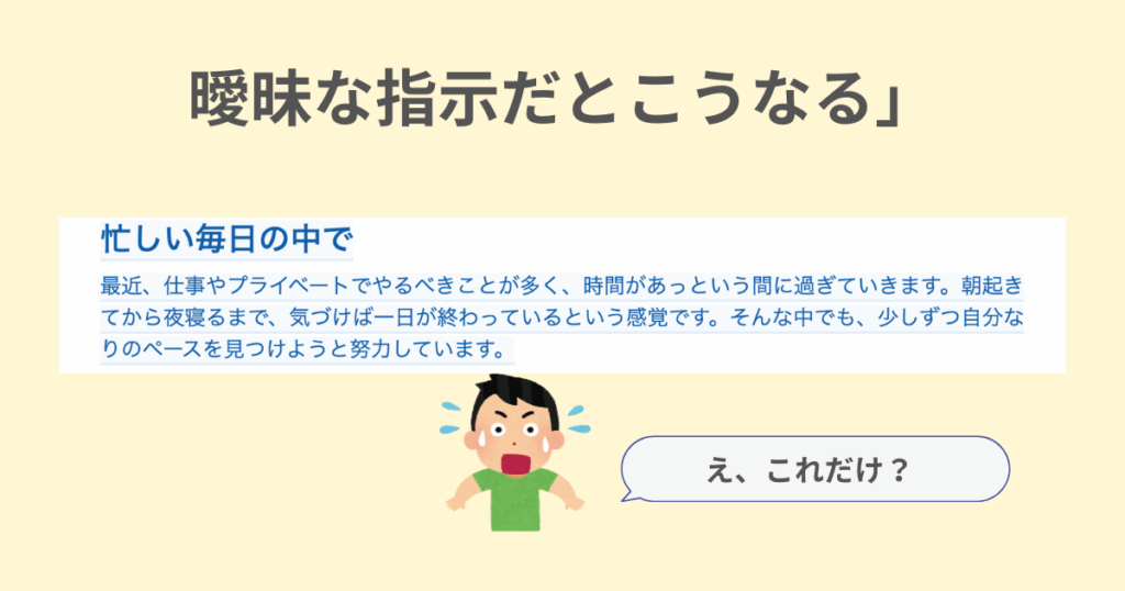 指示が曖昧だと、曖昧な答えしか返せないんです。